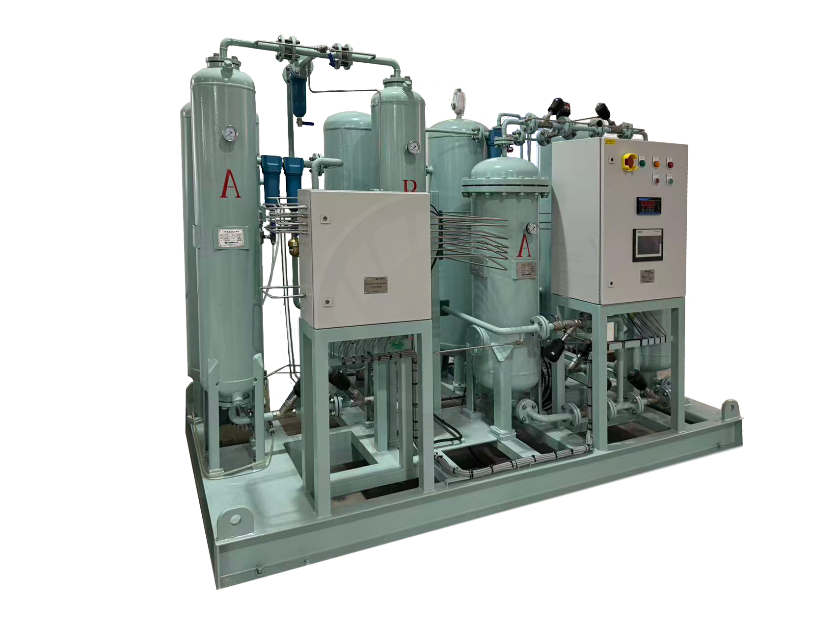 PSA (pressure swing adsorption) nitrogen generator is the use of adsorbent, under pressurized conditions adsorption of compressed air oxygen, nitrogen production, and then through the decompression of oxygen, so that the adsorbent regeneration. Due to the mature technology, a wide range of applications.